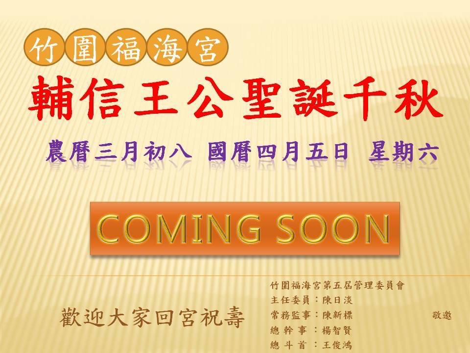 🙏輔信王公會(農曆3月7日,晚上六點擲爐主)