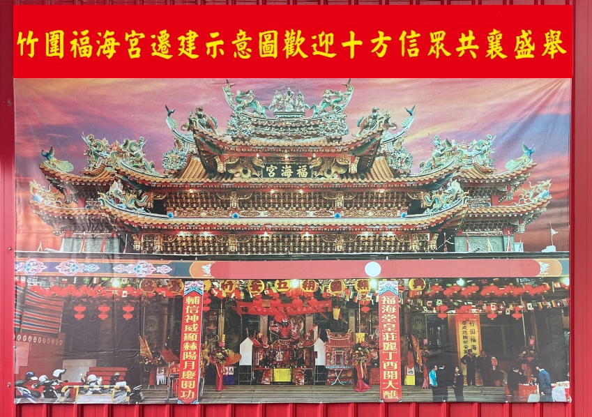 早期來到桃園開墾的先民大部分是漳州人,所以在當年最熱鬧的竹圍街庄上,以漳州人為主的先民就把家鄉的守護神— 開漳聖王的軍師輔信王公,供奉來竹圍祭拜,就是我們今天最主要將介紹的「竹圍大廟」—「福海宮」。