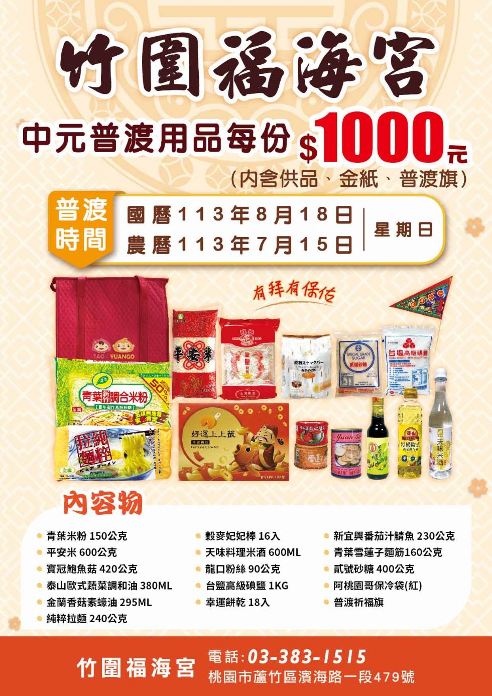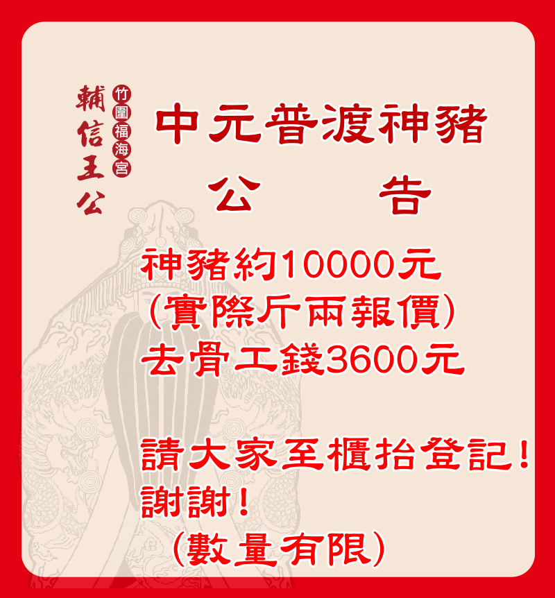 ※請於農曆七月二十二日前領回, (每一份壹仟元整,請洽服務台)